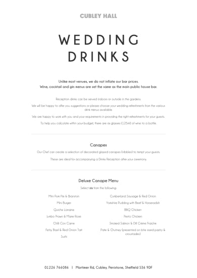 Please find below exemplars of our prevailing pricing structure. For a precise and tailored estimate, we kindly request you to reach out to Sandra, our esteemed wedding specialist, with your specific requirements. Subsequently, we shall furnish you with a formal written estimate. Click below to download our latest menu’s and prices.